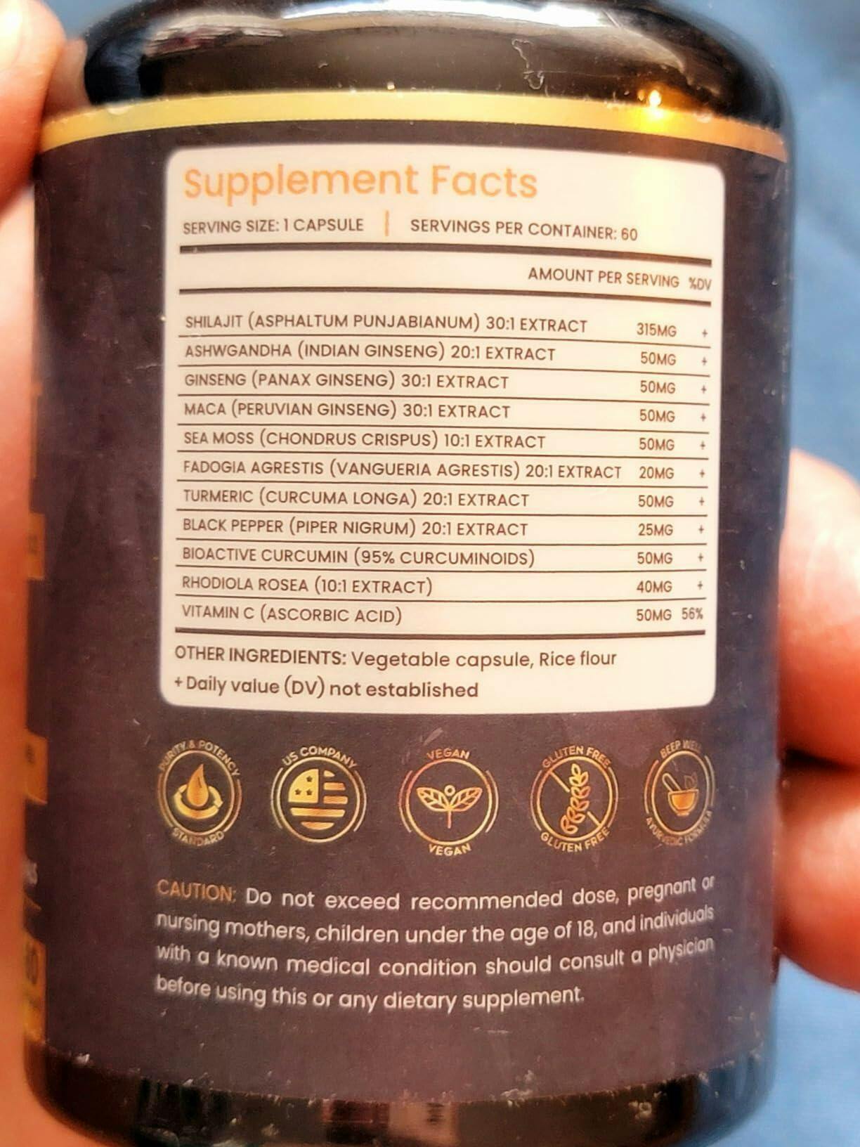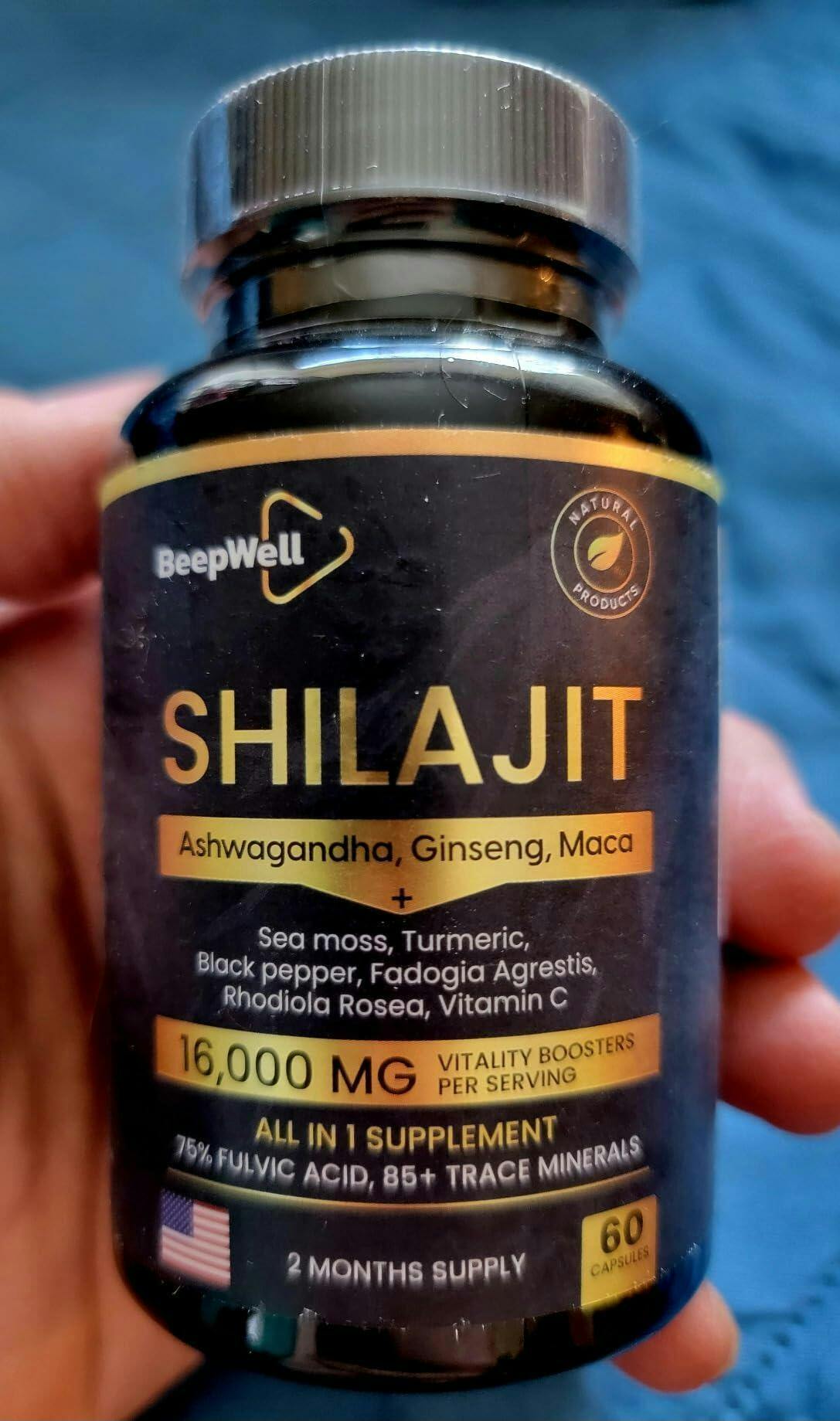 Shilajit Capsules (16,000mg): Each capsule combines Shilajit extract with Sea Moss, Ashwagandha, and fulvic acid—crafted for daily wellness, endurance, and general vitality.